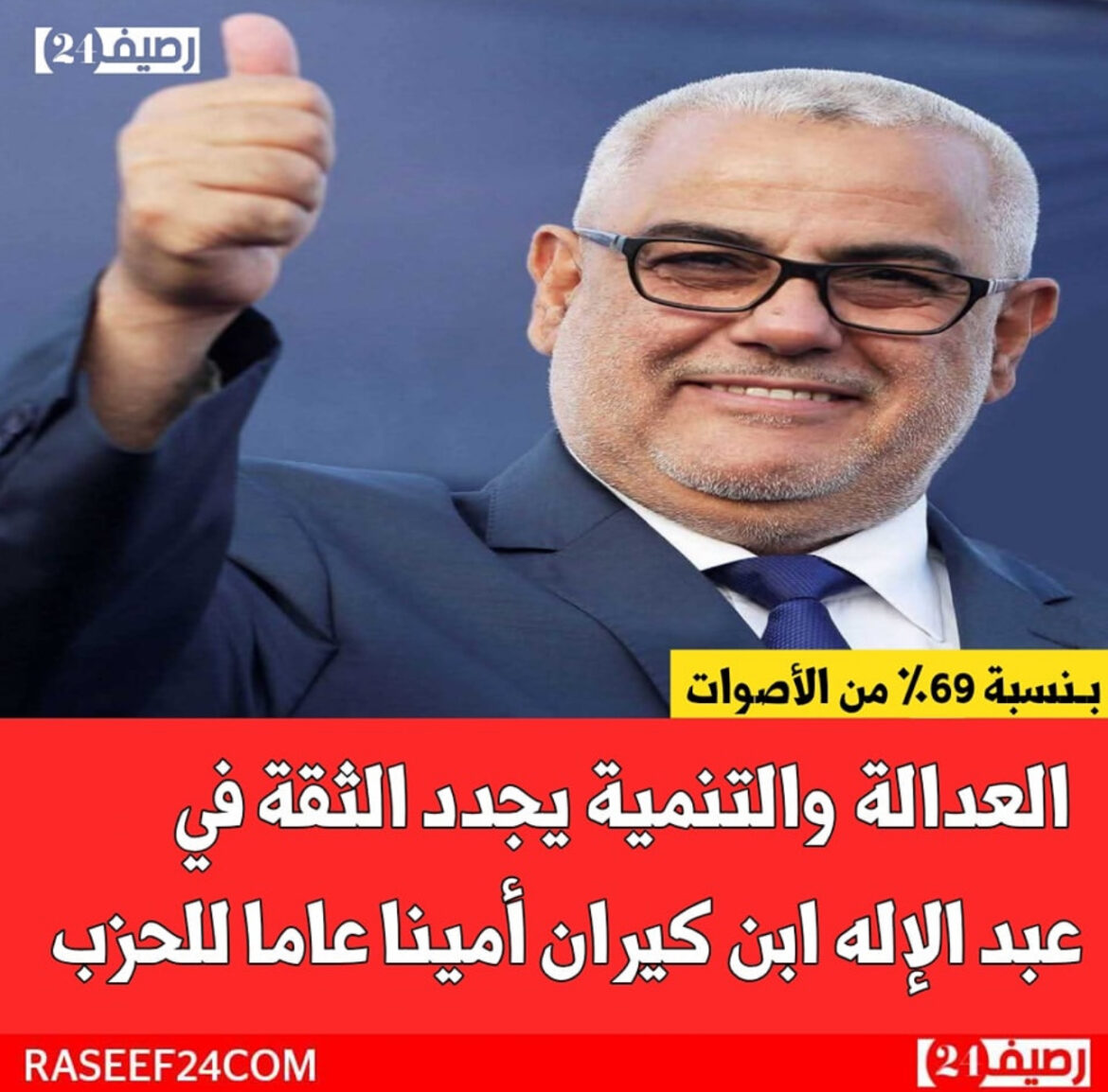 بعث صاحب الجلالة الملك محمد السادس، نصره الله، برقية تهنئة إلى السيد عبد الإله ابن كيران، بمناسبة إعادة انتخابه أمينًا عامًا لحزب العدالة والتنمية خلال المؤتمر الوطني التاسع للحزب.