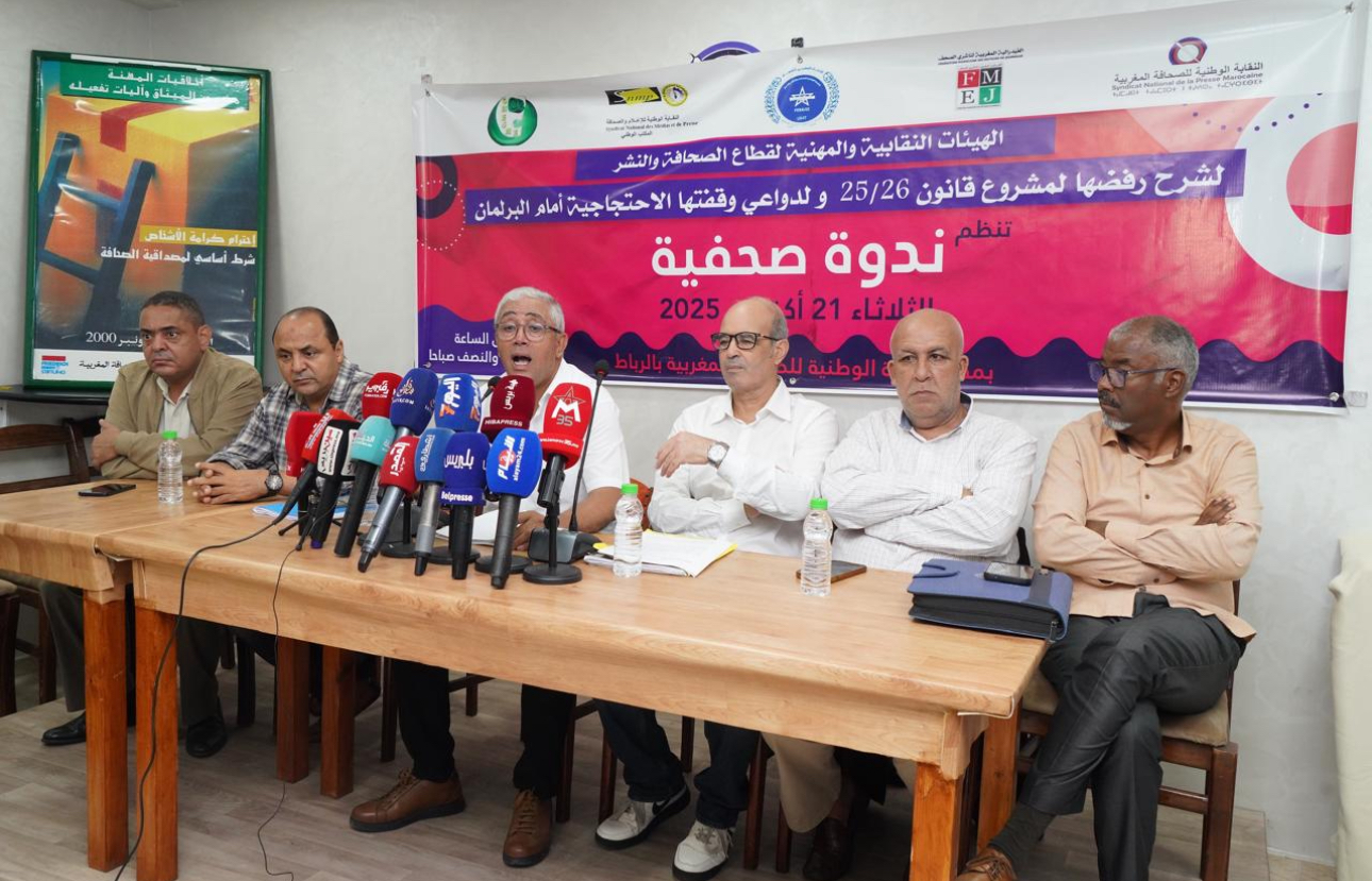 اللقاء خُصص لعرض الموقف الموحد من مشروع القانون رقم 26.25 المتعلق بإعادة تنظيم المجلس الوطني للصحافة، والذي وُصف من قبل المتدخلين بأنه “تراجعي” ويمس استقلالية المهنة وحرية التعبير المكفولة بموجب الفصل 28 من الدستور المغربي.