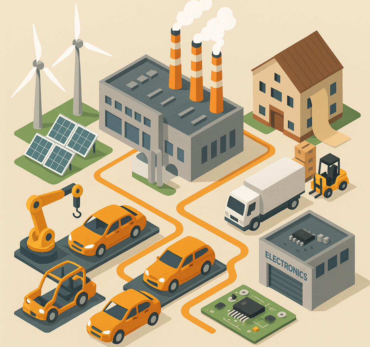 - الطاقات المتجددة: إنتاج معدات الطاقة الشمسية والريحية.